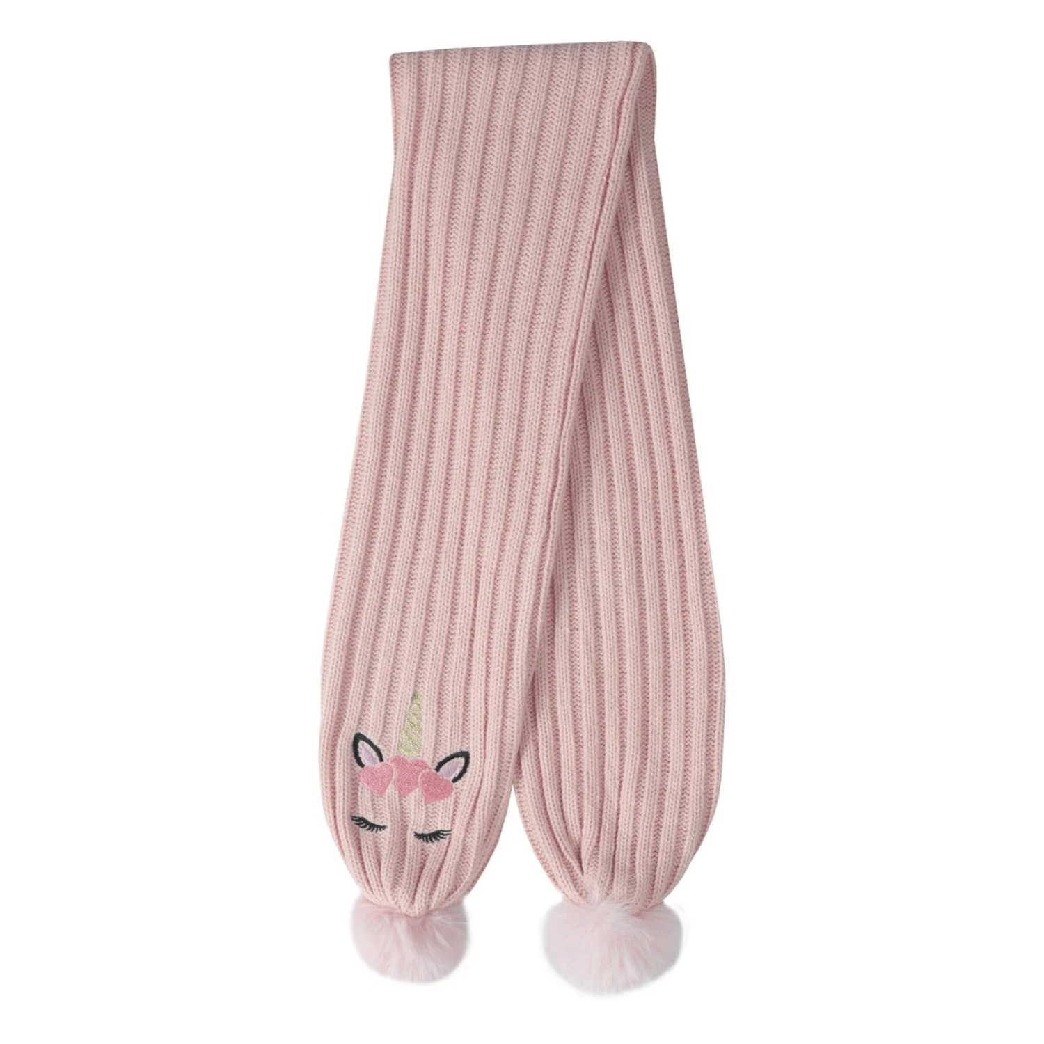 Écharpe douillette pour enfants, tricotée avec des pompons.