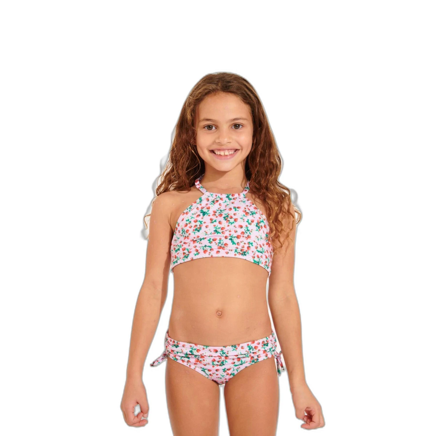 Maillot de bain 2 pièces rose pour enfant fille Mini Legos Liberries de la collection Banana Moon Kids. L’imprimé cerises rend ce maillot adorable et très girly. Il est parfait pour la plage !