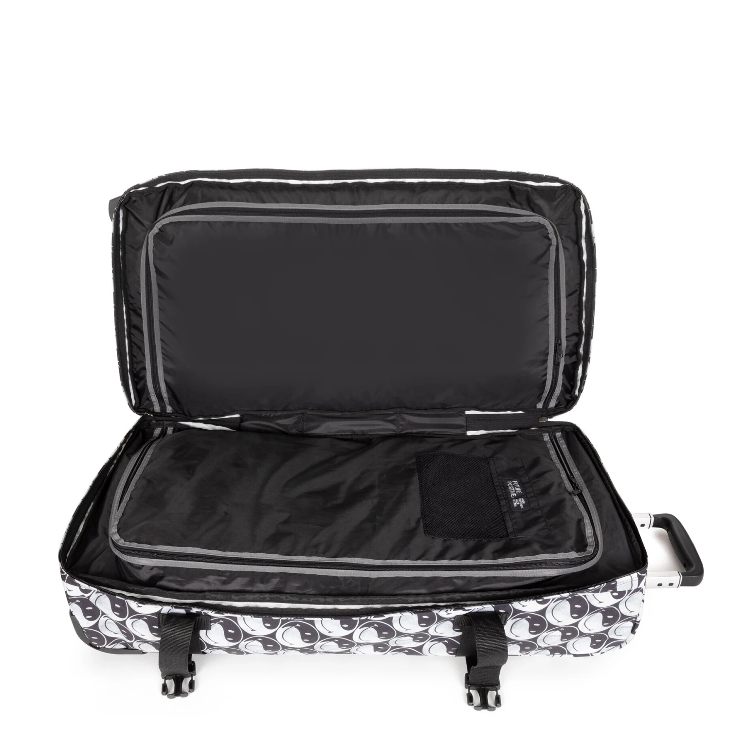 Notre bagage à roulettes grand format présente des caractéristiques supplémentaires en termes de durabilité et de sécurité. Les deux compartiments accueilleront en toute sécurité vos effets personnels grâce au système de verrouillage intégré. Ce bagage durable est doté de tubes en aluminium, de patins de protection et d’un losange en relief situé sur la poignée.